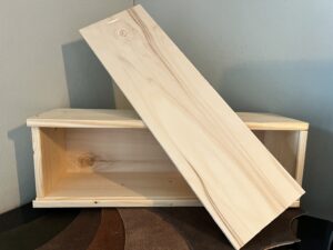 Deze houten wijnkist met schuifdeksel is uitermate geschikt voor 1 grote fles champagne of bijvoorbeeld een grote fles bier. Het kistje heeft de volgende buitenmaten: 35 x 10,5 x 10,5 cm en is gemaakt van grenen hout.