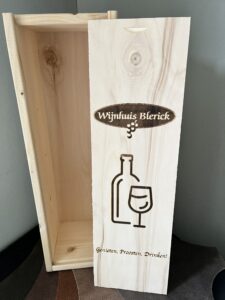 Geef hierboven door welke tekst u op het kistje wil hebben. Wilt u graag een afbeelding of logo op het kistje hebben? Neem dan contact met ons op.